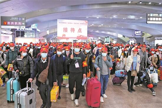 广西务工人员抵达广州南站 羊城晚报记者 曾育文 李永乐 摄