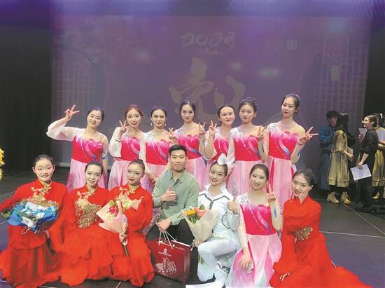 “月下听花”舞蹈团合影(白色衣服的是张晓琳) |