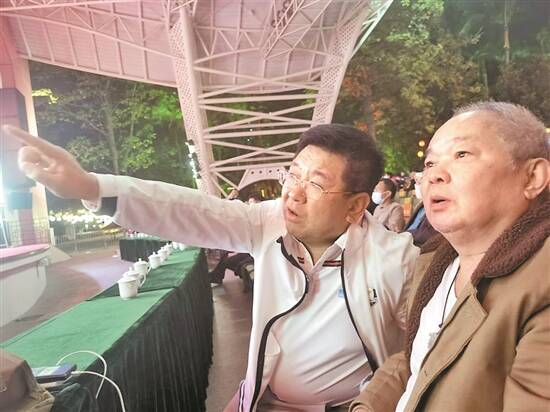 王成(左)与何伯 羊城晚报记者 柴智 摄 |