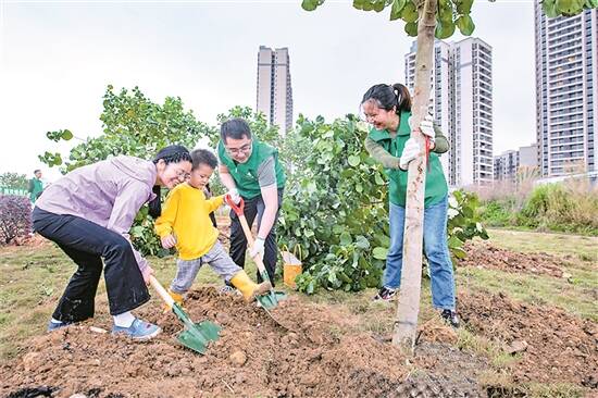 羊城晚报记者 马思泳 李春炜 符畅 徐振天 马灿 冷霜 岭南大地,春天植树正当时。广东全省范围内联动开展推进绿美广东生态建设义务植树活动,广州多区积极响应,为“家”门口的土地植绿。 为“家”门口的土地添“绿衣” 位于广州城央、地处超大城市中轴线上的海珠国家湿地公园迎来了新一批绿植。海珠区在海珠国家湿地公园二期园区内设立植树点,种植阔叶乡土树种红花紫荆84株,为广州人“家”门口的湿地丰富了绿化之美。 白云区钟落潭镇健康城健康大道入口南侧地块,也栽种了200多棵树。6岁小男孩黄北辰在家长倪小姐的带领下种下了小树苗,并为认领的树起名为“魅塔骑士”:“起这个名就很酷,植树让我们的环境变得更好。”据悉,白云区健康大道入口南侧地块下一步将进行升级,打造为休闲体育公园,供市民休憩娱乐。 番禺区的植树呈现出一派热火朝天的劳动场面,2700多株树苗栽种在南大干线智联带状公园,为周边居民家门口增添了绿色的生机。 在荔湾区,荔诚一街周边绿地迎来了新树苗,130株树木在此安家,广钢新城居民踏出家门口,便可观赏4000平方米的绿意之景。 增城区把绿植的根扎进多个镇、街,树苗将在荔城街棠厦村西冚合作社的鱼塘、朱村街白水山森林公园、仙村镇沙滘村木棉头公园等地方茁壮成长。 栽种特色树木,丰厚绿美含义 岭南气候温和湿暖,为众多绿植提供了适宜的生长环境,多元化的树种树苗被栽种在广州各地,为羊城绿化之美增添了不少新意。 荔湾区将岭南气候特点和荔湾文化相结合,因地制宜选取榕树、小叶榄仁、大叶紫薇、荔枝等特色130株乡土树木;串钱柳、黄花风铃木、宫粉紫荆等200多株开花树木在天河区珠吉街道扎根;黄花风铃木、紫花风铃木、木棉、细叶榕等2400余株适宜岭南水土的乔木灌木在花都区花城街道蓝楹街新白广绿地被种下;在黄埔区的新龙镇旗冚村金坑河旁空地,种植了榕树、红花紫荆、大叶紫薇等乡土树种200余株,“添绿”近6000平方米…… 特色树木在羊城沃土栽种,承载着美好意义的树木也被播下了种子。在广州南沙湿地,来自粤港澳的青年代表共植青绿,播种下“青年林”,6位青年代表共同为“青年林”揭牌,将青春融入绿美广东生态建设中。南沙此次“绿美广东,青年先行”义务植树活动是省级示范活动,“青年林”的建设将在广东其他市、县开展。 白云区新市街道,20余棵树苗被栽种在新市街新垃圾压缩站空地处,“街道新垃圾压缩站,预计今年6月投入使用。在这个地方开展义务植树活动有着代表意义。”绿美和环保相得益彰,新市街道市政服务所所长曹柱明说,新垃圾压缩站占地300多平方米,共设有三个机组,其中一个为厨余垃圾压缩机器。 绿美建设成果将在多区绽放 2023年,市民将享受到绿美建设的成果,绿美广州在不久的将来呈现出别样的景象。 参与华南国家植物园体系建设,配合做好广州花园园区建设和周边基础配套工作,参与建设兰圃兰科植物专类园……绿美越秀的蓝图已徐徐展开。2023年,越秀将做好“城园融合”文章,在新一期的越秀区绿地系统规划中,创新开展辖区树冠规划,高质量系统谋划,立体统筹全域绿化资源。 荔湾区计划在2023年新建2个城市公园、5至7个口袋公园、6块公共绿地,新增绿地面积超10万平方米。 绿化美化和生态建设“八大工程”将在白云区落地。白云区将建成2600亩高质量水源林,推进白云湖大道、白云新城周边道路、黄金围滨江公园等重点绿化项目建设。