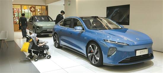 广州天河区某蔚来空间体验店内展示的蔚来ET7 |