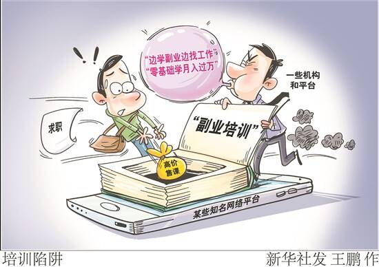 文/图 新华社 眼下正是春季招聘的重要阶段,大量求职者上网求职。一些机构和平台通过在知名网络平台投放引流广告或内容,鼓吹求职者应“边搞副业边找工作”,并诱导他们参加所谓“免费试听,易学习、上手快、好赚钱”“零基础学月入过万”的技能培训。 新华社记者调查发现,此类“副业培训”名目繁多,有不少名不副实,真实目的是以“广告引流—学员进群—忽悠变现—高价售课”牟利。学员高价购买的课程内容质量低劣,多数没有实用价值,既浪费钱又浪费时间。其中部分学员还遭不法分子诈骗。 名目繁多 忽悠兼职特积极 互联网平台上的“副业培训”名目繁多。 其一,视频剪辑类。记者通过扫码报名一家视频剪辑培训课后,进入了一个约150人的微信群。该群内有课程管理人员发布的鼓吹多种“变现玩法”的内容。直播课程由一位自称有2000万粉丝的影视博主讲授,除简单介绍了部分视频平台的推荐规则外,其大部分时间都在“展示”自己通过平台卖货和变现的业绩,宣称:“最近的日收入最低19000元。” 课程快结束时,该“讲师”表示可为15位学员进行“一对一”授课,不仅能“手把手”教会各类变现技巧、赠送粉丝、对接带货货源,还许诺如果学员全职从业,从第二个月起每月收入将不低于1万元,但需要付课程费2990元。有部分学员付了款。 其二,短视频平台内容搬运类。在多个社交平台账号上都有此类广告,宣称“不用会英语,不用懂拍摄剪辑,只要掌握‘搬运’规则”将国内短视频平台发布的视频“搬运”到海外版就可以坐等“流量变现”赚大钱。 其三,“学‘心理倾听师’既能领职业证书还能获派单兼职赚钱。”为说服记者掏钱买课,某培训机构工作人员多次强调培训后会发给证书,机构还会“派单”给学员兼职赚钱。但当记者询问能发“什么证书”、兼职“派单”频率和方式时,该工作人员均语焉不详。其他还有诸如“配音变现”“数据分析师”等培训也存在名不副实的问题。 有不少求职者参加此类培训班,记者参加的多场线上直播课参加成员均超过千人,其中不少人急于求职或当前求职不大顺利。 处处陷阱 学员权益无法得到保障 网络“副业培训陷阱”有一些鲜明的“套路”。 第一,大多以“1元学费”“0元学费”“能赚大钱”引流,此后频繁发信息、打电话诱导学员高价买课。相关课费数千元至万余元不等。 第二,培训机构往往会“承诺”学员,掏高学费购课学成后,机构能推荐或“派单”提供兼职赚钱机会。但记者发现,这些承诺绝大多数根本无法兑现。“承诺的20天赚回学费,现在40天了也没兑现。”一名短视频剪辑班学员表示。中国科学院心理研究所多名专家称从未听说过心理倾听师这一职业。 第三,培训效果名不副实、质量低劣。据多名学员反映,有的培训讲师讲课内容非常粗浅,甚至是从网络上粘贴拼凑,几乎没有实用价值;有的培训讲师让学员花几百元买配音软件制作影视讲解视频却无法发布;还有的培训班讲师身份造假。记者联系了据称为剪辑课程授课的知名影视博主,他表示:“网上有人冒充我卖课。” 面对这类陷阱,学员一旦中招,合法权益往往无法得到保障。记者检索多家网络投诉平台发现,针对上述多家机构的投诉量高达上百条,原因多为“不予退款”。 此外,人数众多的“学员群”还面临被涉诈不法分子盯上的巨大风险。北京丰台公安分局洋桥派出所民警骆君灏告诉记者,近期,北京市民李女士报名参加此类副业培训班后,被“讲师”以购物“大额返现”刷单兼职赚钱诱惑,受骗损失上万元。 治理难点 厘清引流平台法律责任 北京航空航天大学法学院副教授、北京科技创新中心研究基地副主任赵精武表示,治理“副业培训陷阱”的关键和难点在于如何斩断不法机构或平台利用知名网络平台进行引流的链条,厘清引流平台的法律责任,压实平台责任承担机制。 一些受害学员告诉记者,引流网络平台事后往往以无法对培训内容负责为由“甩锅”责任。 赵精武认为,在实践中,平台经营者不能放弃对此类培训广告中夸大和虚假成分的审核义务。另外,根据互联网广告的相关规定,平台经营者作为互联网信息服务提供者有义务对利用其信息服务展示、发布的广告内容进行监测、巡查,对于明显存在诈骗风险的“副业培训陷阱”广告,平台经营者也应当就用户的部分损失承担赔偿责任。 如果部分平台账号在其直播、短视频等发布的信息内容中插入“副业培训陷阱”的宣传内容,账号运营者应当与培训机构承担连带责任,平台经营者有义务向受害用户告知相关账号运营者的实际身份。 提醒: 仔细甄别培训机构资质资格 BOSS直聘安全专家提醒,“副业培训陷阱”往往利用求职者急于求职的心理,一些当前求职不太顺利的求职者容易上当受骗。建议求职者注意几点:第一,要拒绝“高薪兼职”诱惑,重点关注薪资是否明显高于平均水平,牢记天上不会掉馅饼;第二,提升技能辅助求职的想法没有错,但要仔细甄别培训机构资质资格,对“培训技能不积极,忽悠兼职特积极”的机构要特别小心;第三、求职心态要调整好,遇到一时不如意也不要气馁或过度焦虑,放平心态、调整策略或寻求专业人士支持。 警方表示,会发挥好各级反诈联席工作机制的作用,如果群众从某平台被引入第三方聊天工具实施诈骗的警情增加,将及时联合市