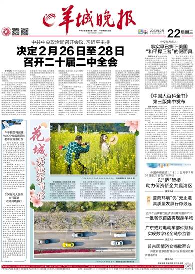 中共广东省委主管、主办 羊城晚报社出版 1957年10月1日创刊 2023年2月22日 癸卯年二月初三 星期三 23℃ 10℃ 责编/袁婧 美编/刘