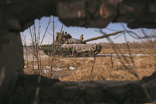 2月23日,乌克兰哈尔科夫,第三独立坦克铁桥的乌克兰军人在演习中乘坐坦克,这是俄乌冲突一周年的前一天 视觉中国供图 |