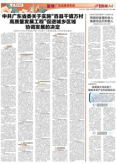 中共广东省委关于实施“百县千镇万村高质量发展工程”促进城乡区域协调发展的决定