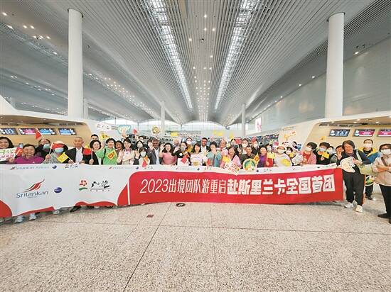 羊城晚报讯 记者刘星彤、通讯员官键摄影报道:3月1日傍晚,又一个首批出境游试点国家在广州迎来首团——含领队在内共计55人的两个旅游团在白云机场T2航站楼集结,他们乘坐斯里兰卡航空当晚20时30分起飞的UL1881次班机直飞科伦坡,前往印度洋上的热带岛国——斯里兰卡游览。首团组团社岭南商旅集团广之旅方面表示,该团为出境团队游重启后赴斯里兰卡旅游的全国首团。出发仪式现场,来自斯里兰卡航空、斯里兰卡驻广州总领事馆以及旅行社的代表为游客送上了首团纪念证书并合影留念。 近日,中国驻多国使馆发布通知称,3月1日起,来华直飞航班人员可以以抗原检测替代核酸检测。据悉,这一政策涉及的相关国家都在首批出境重启试点20国之列,其中,中华人民共和国驻斯里兰卡大使馆的相关防疫通知自3月1日起执行。广之旅方面表示,随团出境斯里兰卡游客均将免费获赠抗原试剂盒,以方便游客入境申报。 “我很尊重斯里兰卡的慢节奏,也非常期待能再次融入这份节奏,去感受这个国家时隔多年后带来的全新体验。”斯里兰卡首团领队之一、广州市金牌导游莫钊表示,作为自己熟识的出境旅游目的地,上一次带团前往斯里兰卡还是2019年。 广之旅总裁赵文志透露,本次首团可享A330宽体机舒适航班直飞往返,全程入住超豪华酒店,“茶园火车”和《千与千寻》原型“海边火车”双火车体验,在雅拉国家公园乘吉普车追踪野生动物等。 记者了解到,今晚,曾创造上架后1分钟即售罄佳话的新西兰全国首团也将从广州出发,60名老广结伴出游。