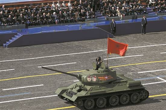 9日,俄罗斯莫斯科,一辆T-34-85坦克参加了在红场举行的胜利日阅兵式,纪念第二次世界大战结束78周年 视觉中国供图 |