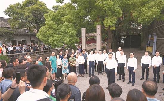 新华社电 中共中央总书记、国家主席、中央军委主席习近平近日在江苏考察时强调,江苏拥有产业基础坚实、科教资源丰富、营商环境优良、市场规模巨大等优势,有能力也有责任在推进中国式现代化中走在前、做示范。要完整准确全面贯彻新发展理念,继续在改革创新、推动高质量发展上争当表率,在服务全国构建新发展格局上争做示范,在率先实现社会主义现代化上走在前列,奋力推进中国式现代化江苏新实践,谱写“强富美高”新江苏现代化建设新篇章。 7月5日至7日,习近平在江苏省委书记信长星和省长许昆林陪同下,先后来到苏州、南京等地,深入工业园区、企业、历史文化街区、科学实验室等进行调研。 5日下午,习近平抵达苏州后,首先乘车前往苏州工业园区考察。在园区展示中心,习近平听取苏州市产业发展和园区整体情况介绍,察看创新发展成果展示。习近平强调,高科技园区在科技自立自强中承担着重大而光荣的历史使命,要加强科技创新和产业创新对接,加强以企业为主导的产学研深度融合,提高科技成果转化和产业化水平,不断以新技术培育新产业、引领产业升级。要继续扩大国际合作,努力打造开放创新的世界一流高科技园区。 随后,习近平来到苏州华兴源创科技股份有限公司考察。习近平走进展厅、研发车间、光电实验室,察看产品研发、生产、测试流程,询问企业设备产品的性能、用途、市场等情况。看到企业研发人员都是年轻人,习近平十分欣慰。他说,国家现代化建设为年轻人提供了广阔舞台,大家正当其时,要把握历史机遇,大显身手,勇攀科技高峰,将来你们一定会为自己对民族复兴所作的贡献而自豪。 位于苏州古城东北隅的平江历史文化街区,距今已有2500多年历史。6日上午,习近平来到这里考察,详细听取苏州古城保护及平江历史文化街区保护、修缮、利用情况汇报,步行察看古街风貌,观看苏绣制作,体验年画印刷。他说,中华优秀传统文化代代相传,表现出的韧性、耐心、定力,是中华民族精神的一部分。 街边小广场上,曲乐悠扬,当地居民和游客正在欣赏苏州评弹表演。看到总书记来了,大家纷纷向总书记问好。习近平饶有兴致地同大家一起观看表演,他对大家说,昨天我看了工业园区,今天又看了传统文化街区,到处都是古迹、名胜、文化,生活在这里很有福气。苏州在传统与现代的结合上做得很好,不仅有历史文化传承,而且有高科技创新和高质量发展,代表未来的发展方向。他对当地负责同志讲,平江历史文化街区是传承弘扬中华优秀传统文化、加强社会主义精神文明建设的宝贵财富,要保护好、挖掘好、运用好,不仅要在物质形式上传承好,更要在心里传承好。 当天下午,习近平在南京市考察调研。他来到紫金山实验室,走进展厅、6G综合实验室,详细了解推进重大科技任务攻关等情况。习近平强调,现在信息技术飞速发展,颠覆性技术随时可能出现,要走求实扎实的创新路子,为实现高水平科技自立自强立下功勋。 南瑞集团有限公司是国家电网公司下属的能源互联网领域高科技企业。习近平来到集团考察调研,听取南京市打造智能电网国家先进制造业集群总体情况介绍,察看企业自主可控技术产品展示。在企业智能制造生产区,习近平详细了解企业开展核心技术攻关,服务电网安全、电力保供和能源转型等情况。他指出,能源保障和安全事关国计民生,是须臾不可忽视的“国之大者”。要加快推动关键技术、核心产品迭代升级和新技术智慧赋能,提高国家能源安全和保障能力。 离开企业时,习近平勉励年轻研发人员说,大家意气风发、朝气蓬勃,要立志高远、脚踏实地,一步一步往前走,以十年磨一剑的韧劲,以“一辈子办成一件事”的执着,攻关高精尖技术,成就有价值的人生。 7日上午,习近平听取了江苏省委和省政府工作汇报,对江苏各项工作取得的成绩给予肯定,希望江苏在科技创新上取得新突破,在强链补链延链上展现新作为,在建设中华民族现代文明上探索新经验,在推进社会治理现代化上实现新提升。 习近平指出,中国式现代化关键在科技现代化。江苏要在科技创新上率先取得新突破,打造全国重要的产业科技创新高地,使高质量发展更多依靠创新驱动的内涵型增长。要强化企业科技创新主体地位,促进创新要素向企业集聚,不断提高科技成果转化和产业化水平。要深化科技体制改革和人才发展体制机制改革,形成支持全面创新的基础制度,多元化加大科技投入,加强知识产权法治保障,充分激发各类人才创新活力。 习近平强调,要把坚守实体经济、构建现代化产业体系作为强省之要,巩固传统产业领先地位,加快打造具有国际竞争力的战略性新兴产业集群,推动数字经济与先进制造业、现代服务业深度融合,全面提升产业基础高级化和产业链现代化水平,加快构建以先进制造业为骨干的现代化产业体系。要畅通国内国际双循环,积极打通堵点、接通断点,不断创新吸引外资、扩大开放的新方式新举措,建设具有世界聚合力的双向开放枢纽,推动外贸创新发展,不断巩固和拓展国际市场。 习近平指出,建设中华民族现代文明,是推进中国式现代化的必然要求,是社会主义精神文明建设的重要内容。江苏要加强优秀传统文化的保护传承和创新发展,积极参与建设长江和大运河两大国家文化公园。要大力发展现代科技、教育事业,