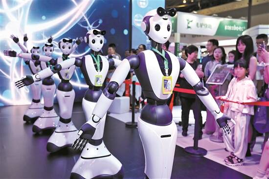 世界人工智能大会现场,人形机器人在进行“千手观音”表演 图/新华社 |