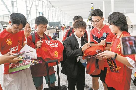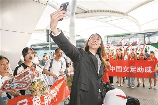 中国女足7日从广州白云国际机场出发,前往澳大利亚备战2023女足世界杯。10时15分,身穿黑西装、白衬衫的中国队姑娘们抵达机场候机厅,近百名球迷热情送机。 队长吴海燕: 尽情享受世界杯舞台 中国女足6日晚从集训地青岛飞抵广州,球队下榻在离机场五公里的酒店内,7日一早,球队坐大巴再次抵达机场,开启国际飞行的旅程。据悉,球队搭乘13时25分的航班到新加坡转机,在新加坡樟宜机场停留5个小时后,再飞往澳大利亚阿德莱德。 中国女足球员抵达广州白云国际机场前,国家队后勤队伍已经提前一小时将球队的大部分行李托运,抵达机场的队员只需负责个人行李,每人一个大黑箱子和一个黑色背包。等待托运个人行李的女足球员们表情轻松,三三两两聚在一起聊天说笑,以及给球迷签名合影。当日有近百名球迷为女足姑娘送行,他们打出“铿锵玫瑰热爱有你,女足必胜”的横幅,并给每位球员们送上向日葵,以及印有“必胜”“赢”字样的抱枕。 女足队长吴海燕在接受采访时表示,这应该是自己参与的最后一届女足世界杯,自己会更加珍惜和享受这样的舞台,也会全力以赴。她透露,目前大家的心态都挺好的,每个人都将尽情享受这个舞台。“接下来在澳大利亚还有两场热身赛,我们会根据教练员的安排,慢慢调整到最好的状态。路途上大家该休息还是会休息好,保持好的状态,毕竟路程还长,要放松心态!希望广大球迷一如既往支持女足,也希望我们能带来精彩的表现!” 尽管天气炎热,主教练水庆霞的黑色西装穿得一丝不苟。她透露球队会面带微笑迎接挑战,“今天我们就要出征开启世界杯之旅,希望球队能团结一致,把比赛踢好。感谢球迷一直以来对中国女足的支持,祝中国女足好运!” 主帅水庆霞: 力争进入世界杯八强 为了备战女足世界杯,中国队进行了两个阶段的集训,第一阶段在上海进行了体能储备、力量训练和技战术层面的沟通,第二阶段则在青岛进行了赛前冲刺,球队得到进一步的磨合。水庆霞透露,目前球队还未达到100%的状态,尤其留洋的国脚身体状态没能达到最好,后期训练强度要提升。另外球队核心、留洋球员王霜将在澳大利亚与球队会合,与队伍磨合的时间只有10天,也是一个挑战。 世界杯小组赛,中国队将先后面对丹麦、海地和英格兰女足。水庆霞表示第一场比赛非常重要,她也分析了三个对手的实力:“丹麦队很多球员在英超踢球,强度上高于我们,我们要放松心态,把平时的水平发挥出来。海地队大家都不太熟悉,我们也是通过视频来分析,她们有一些球员在法甲踢球,身体条件非常好,速度也很快,对我们是一种挑战。英格兰队是世界顶级强队,有很好的足球底蕴。对中国女足来说,每场都尽力去打,一场一场去准备。” 首次作为主教练带队参加世界杯,水庆霞坦言自己也会紧张,但会尽快调整,给球员传达信心。“重要的是我们要敢于在困难前亮剑,打出应有的精神面貌,让国人看到中国女足知难而进的战斗作风。”亚洲杯夺冠后,外界对中国女足期盼更高,水庆霞认为是好事,而此次世界杯,她把目标定在小组出线,力争打入八强,“人总要有个目标,朝着目标努力攀登。我们肯定希望能够小组出线,晋级前八。但亚洲杯和世界杯是完全不同的比赛,我们有很多年轻球员,不确定因素很多。我觉得中国女足无论遇到什么情况,都会面带微笑迎接挑战,这是大家希望看到的中国女足。” 羊城晚报记者 苏荇