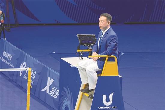 孙纲执裁成都大运会羽毛球比赛 图\受访者提供 |