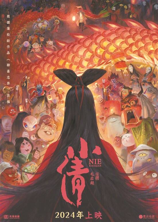 羊城晚报记者 李丽 动画电影《小倩》近日发布海报,宣布影片将于2024年上映。海报中,黑发红衣的小倩背对画面,真容引人遐想。影片改编自《聊斋志异》之《聂小倩》,以秀才宁生在兰若寺意外救下女鬼小倩为起点,讲述二人在亡命天涯的过程中相知相爱的故事。 《聊斋志异》原著借狐鬼故事投影世情百态,被老舍评价为“鬼狐有性格,笑骂成文章”。曾创作《佳人》《启示录》等动画作品的导演毛启超在原著基础上再创作:小倩一心渴盼还阳重生为人,在一场意外中被秀才宁生搭救,两人历经生死,却就在感情升温之际迎来了错综复杂的人生转折。 片方公布的概念海报中,黑发红衣的小倩背对画面,引人遐想。金红色的龙尾蜿蜒盘绕,形态各异的精怪围绕在小倩身边,整幅画面充满东方奇幻气息。 据悉,主创团队2017年萌生《小倩》的项目设想。影片将于2024年上映。