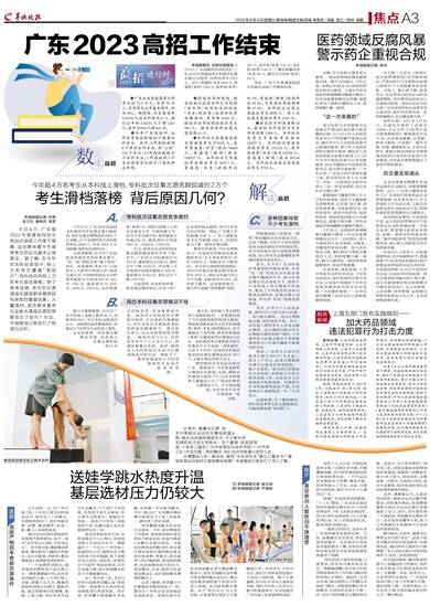 文/羊城晚报记者 崔文灿 图/羊城晚报记者 严锦程 近两年,随着全红婵、陈芋汐等跳水运动员在赛场崭露头角,跳水运动越来越受关注,不少家长早早就把孩子送去学跳水。这个暑假,经层层筛选,十余名儿童在广州市体育职业技术学院(广州市体工队)开启为期一周的集训,他们当中年龄最小的仅5岁。 从懵懂幼儿到一朝成名,复刻“水花消失术”要过几重关卡?基层体育运动选材又面临哪些困境?羊城晚报记者进行了深入了解。 选苗:选拔严格到考查脚后跟条件 8月初的一天,在广州市体工队,十余名儿童完成热身运动后,依次走上1米跳台。在教练的指导下,他们举起双臂、屈膝、绷直脚背,纵身一跃,跳入5米深的泳池。 跳水对运动者的身体条件有细致严格的要求,其中一项为“双手举过头顶时,手肘须过头”。而手指长度、脚面绷直的弧度、脚后跟至小腿附近的筋长、反应灵敏度、骨龄等,都是教练选人时着重考虑的条件。 “一个星期的训练后,基本能判定哪些孩子是可塑之才。”教练谭静瑜介绍,此次参加训练的儿童,上午进行陆上训练,着重于压关节、跳操等柔韧性训练以及倒立、跳跃训练,通过观察他们的弹跳、体能、上肢力量,判定其是否适合专业跳水;下午进行下水训练,有些孩子还不会游泳,所以要先过游泳关。根据往年经验,一批孩子中有两三成能坚持下来,但最后真正走专业路线的仅有一成。 退出的原因各有不同,有的是难过个人心理关,有的则受限于自身技术水平。谭静瑜打了一个比方:广州市体工队就好比小学,能帮有志于跳水的孩子打好基础,接下来能否进入省队、国家队,还要经历“中高考”等层层筛选,只有自身能力强、真正热爱跳水的孩子才能脱颖而出。 在广州市体工队,年仅9岁的小姑娘李美馨已是“资深学姐”,带领着今年参训的弟弟妹妹进行热身训练。四年前,李美馨开始接触艺术体操,学体操一年后转学跳水。今年,她已在广东省跳水锦标赛中取得女子丁组1米板第二、跳台第三的好成绩。 李美馨刚来跳水队时还不会游泳。当年,面对教练的下水要求,她恐惧得抱住身边的柱子拼命反抗,但如今挑战5米跳台也毫无惧色。当她站在数米高的跳台时,抬头便可望见悬挂在墙的跳水奥运冠军杨景辉、张雁全、陈艾森等人的巨幅海报,那是她的榜样,也是她继续前行的动力。李美馨说,未来,她的目标是参加奥运会,站在国际跳水赛事的跳台上。 记者了解到,李美馨与今年暑假参加集训的孩子一样,都经由广州各区业余体校层层选拔而来。荔湾区青少年业余体校跳水项目教练赖导航表示,曾在全国跳水冠军赛夺得金牌的跳水运动员、奥运冠军谢思埸的妻子张莹今年加入体校,成为新晋跳水教练。由于“招兵买马”后人手充裕,从前荔湾区选苗子主要瞄准小学一年级学生,今年开学后,他们计划将选苗范围扩大至幼儿园阶段。眼下正值暑期,每天有30多名儿童参加训练,他们当中的1名男生已被市队教练看中,未来或能在广州市体工队看到他的身影。 育才:基层参训人数依旧不够理想 党的十八大以来,中国竞技体育实现了无数历史突破,不断攀越高峰,成为体育强国建设的引领者和带动者。一代代运动员在赛场奋力拼搏,摘金夺银,向世界展示了可信、可爱、可敬的中国形象,他们当中不少人都来自广东。 根据广东省体育局的数据,“十三五”期间,广东运动员参加国内外重要比赛共有97人次获世界冠军、166人次获亚洲冠军,获540项次全国冠军;12人次超世界纪录、28人次超亚洲纪录,超39项次全国纪录。 一骑绝尘的背后,是多年来广东体育教育发展的结果。当前,体教融合全员普及,特色发展竞技提升。全员体育为竞技体育提供肥沃土壤,充裕的经费和设备支持也为体育高质量发展提供了保障。 “现在的孩子真的很幸福,只要喜欢,很多项目都有机会尝试。”谭静瑜感慨,如今孩子们的训练环境和自己当年练习跳水时的环境大不相同。她回忆,大约30年前,她在越秀山下的露天水池练习跳水,训练场的跳台用水泥砌成,水池里的水很久才换一次,而且当时的跳水比赛屈指可数。但如今,自己所任职的广州市体工队,训练设施基本按照国际标准建造,新配的7块跳板价值20多万美元,馆内冰机、录像设备一应俱全,水池每日净化,还有专业教练、校医组成的团队及时处理各种意外情况。 此外,谭静瑜认为,从基层到国家队,教练对运动员都严格要求,训练量有保证;各项赛事蓬勃兴起也为运动员提升技能提供了动力,如今,每年都有两三个国家级、省级跳水比赛在举办。这也是李美馨等小将,练习几年就能在大型赛事中大放异彩的重要原因。 赖导航说,近两年,随着全红婵等运动员的“走红”,送孩子前来学跳水的家长明显增多,但即便如此,基层参训人数依旧不够理想,“有七成家长担心学体育影响学习,还有三成觉得危险。” 作为基层教练,赖导航承担着为上级输送苗子的重任,如何让家长和孩子们接受竞技体育是一大难题。对此,他有压力,亦觉得责任沉甸甸。“广泛选材是我们接下来工作的重中之重,基层训练人数一定要有保证,只有这样才能为国家输送更好的人才。”赖导航说。