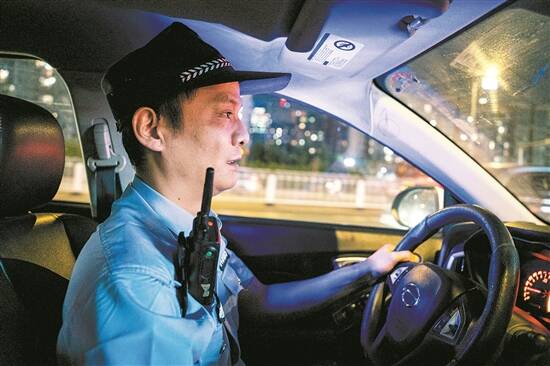 民警董锦潮驱车穿梭在繁华的道路上,他正前往广州南站会合同事,将在外省捉拿归案的诈骗人员带回派出所 |