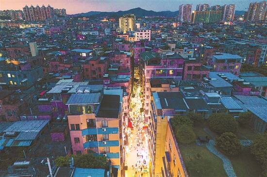 夜幕下的棠东村,下班时段,街道上的人逐渐多了起来 |