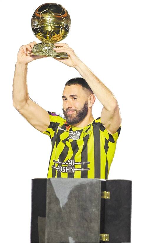 本泽马向新东家展示自己的金球奖 图/视觉中国 |