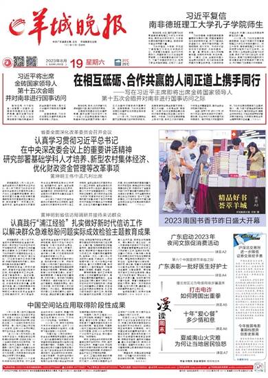 中共广东省委主管、主办 羊城晚报社出版 1957年10月1日创刊 2023年8月19日 癸卯年七月初四 星期六 31℃ 25℃