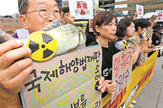 24日,韩国市民在首尔市中心集会,抗议日本核污染水排海 新华社发 |
