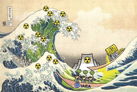 昔有《神奈川冲浪里》,今有“核污水冲海里” 漫画/杜卉 |