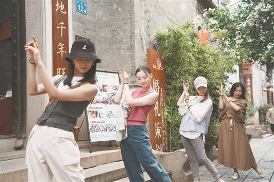 总编导韩真(左)、周莉亚来到广州,有时间都会去沙湾古镇走一走 |