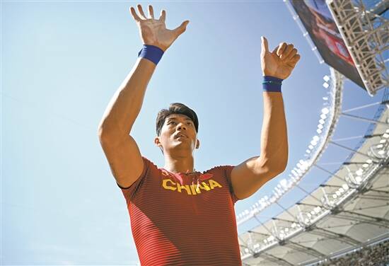 在布达佩斯田径世锦赛男子撑竿跳高比赛中的黄博凯 新华社发 |