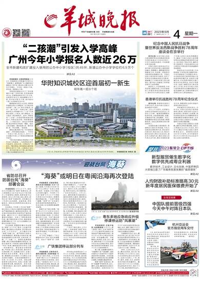 中共广东省委主管、主办 羊城晚报社出版 1957年10月1日创刊 2023年9月4日 癸卯年七月二十 星期一 责编/孙焰 美编/丘淑斐 校对/姚毅