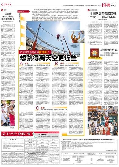 羊城晚报记者 柴智 在布达佩斯田径世锦赛男子撑竿跳高的比赛中,广东名将黄博凯在预赛和决赛两次追平个人最佳成绩5米75,其运动生涯至今总共才四次飞跃这一高度,能够在自己的第三次世