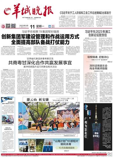 中共广东省委主管、主办 羊城晚报社出版 1957年10月1日创刊 2023年9月11日 癸卯年七月廿七 星期一 责编/林圳 美编/丘淑斐 校对/姚毅