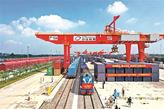 搭载50英尺集装箱的铁路多式联运快车从广州国际港站始发 刘玉良 摄 |
