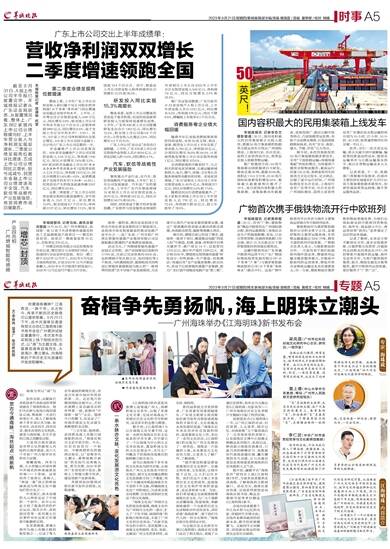 羊城晚报记者 莫谨榕 杭莹 截至8月31日,A股上市公司半年报已披露完毕。羊城晚报记者从广东证监局获悉,从披露情况看,整体上,广东862家境内上市公司业绩稳健向好,上半年营业收入与净利润