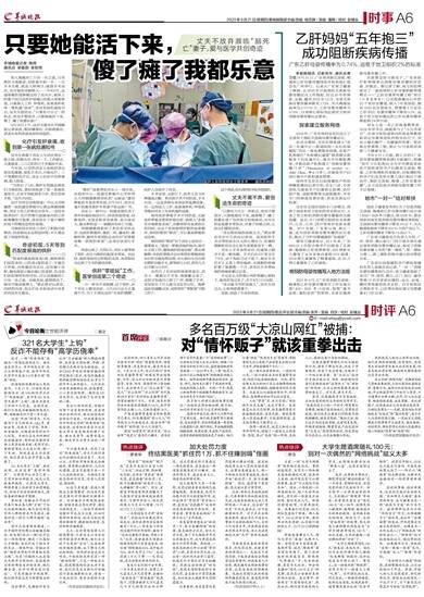 羊城晚报记者 陈辉 通讯员 梁嘉韵 章智琦 家人离脑死亡只有一步之遥,只有换肝才能救命,但胜算不到一半。一旦手术失败,就是人财两空;就算手术成功,也可能变成植物人……今年6月,这道