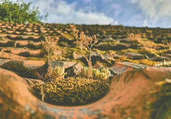 □王文莉 儿子欢天喜地带回一盆多肉盆栽,说是同学送他的生日礼物。母亲瞄了一眼肥厚的叶片,感慨地说:“瓦房上长出来的‘猫爪子’,现在也摇身一变成了盆栽!” 儿子好奇地问:“老妈,这种植物叫‘猫爪子’?”我给儿子解释,这是长在屋瓦上的瓦楞草,学名应该是瓦松,属于一种多肉植物。因为形似猫爪,在老家俗称“猫爪子”。 小时候,农村老家是清一色的瓦房,早春过后,瓦松种子开始将根须扎在瓦片的缝隙。几场春雨过后,它们就变得有模有样,在屋瓦上散发出一簇簇绿意。隔壁阿婆住着的老屋,屋顶的瓦松总是三五成群地聚成小松塔模样,伫立在瓦沟间。每年暑假,我都会攀着梯子爬到阿婆的屋顶,掐下几朵瓦松放进嘴里细细品尝,酸酸的肉质在唇齿间有种特别的回味。 每次阿婆见我爬上屋顶,就会假装嗔怒地喊:“馋嘴丫头!摘几朵装兜里就行了。我扶着梯子你慢点下来,真是三天不打,上房揭瓦!”我嬉皮笑脸地溜下梯子,和阿婆狡辩:“阿婆,我主动上房给你修瓦,你得感谢我才对嘛。”阿婆帮我整理凌乱的小辫子,仍不忘数落我:“上房修瓦是男人们干的活,你一个小丫头逞啥能!” 阿婆的瓦房年代久远,瓦松长在瓦沟里,会阻碍雨水流动。为了防止雨水流速过慢,导致其渗透瓦片的缝隙漏进屋里,阿婆每年都要清理一次瓦松。而阿婆最懂我的心思,总笑眯眯地说:“馋嘴猫,屋脊上的‘猫爪子’还会给你留着呢,不用担心没有零嘴吃。” 其实,我也不单为了馋嘴,爬上屋顶,是更喜欢那种坐在高处的感觉:俯视下去,院里的桐树变成了小矮个儿,鸡鸭们像一群小不点,老黄牛也不再那么高大健壮……我似乎变成了一缕青烟,可以腾空而起和飞翔的鸟儿交谈。这种天马行空的想象,才是我独享的一种惬意和自由。 每年暮夏过后,苍绿肥厚的瓦松会开出淡白的小花。而秋风吹来的时候,瓦松会长得更高,它们褪掉青绿,披上一层金色,在青黛的瓦上疏落有致地彰显秋天的况味。开花结果的瓦松就这样伴着炊烟,如同一排排看家护院的哨兵,守护着一座座农家小院。 后来,老家开始流行小洋楼。瓦房纷纷被推倒,建成二层小洋楼,屋顶全是水泥预制板,气派又亮堂。就连砖瓦厂都只生产红砖,不再烧制屋瓦。瓦房几乎消失殆尽,瓦松也变成了难得一见的稀罕物。 想不到,童年时的瓦松如今竟以多肉盆栽的身份再次进驻到我家,实在是一种不可言说的缘分。唐代诗人郑谷有诗云:“露湿秋香满池岸,由来不羡瓦松高。”在我的心里,瓦松不但带给我诗意的高远,还让我拥有了一份曼妙童趣和温馨回忆。