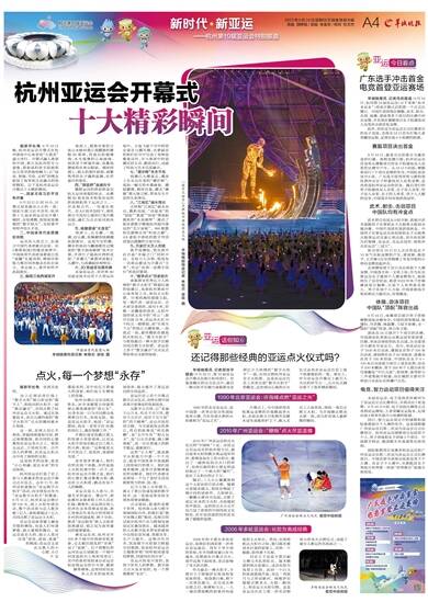 羊城晚报讯 记者郝浩宇报道:9月23日,第19届亚运会开幕式在浙江杭州进行。在备受瞩目的点火仪式中,最后一棒火炬手汪顺与承载着全亚洲亿万人热情的“数字火炬手”一道,共同点燃杭州亚运会主火炬塔