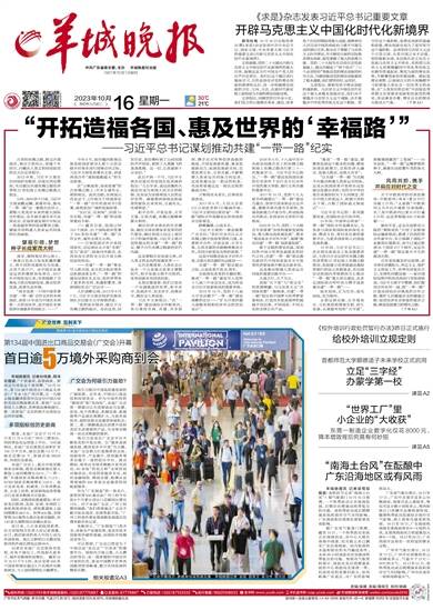 中共广东省委主管、主办 羊城晚报社出版 1957年10月1日创刊 2023年10月16日 癸卯年九月初二 星期一 报料热线:(020)1