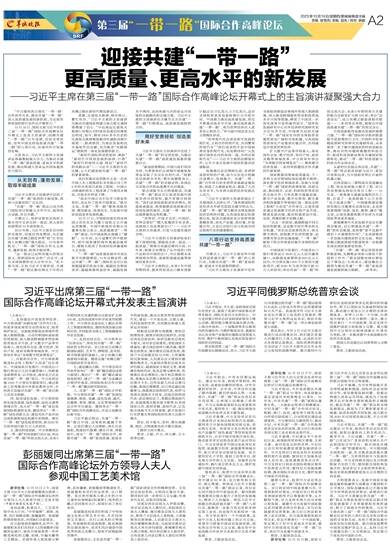“中方愿同各方深化‘一带一路’合作伙伴关系,推动共建‘一带一路’进入高质量发展的新阶段,为实现世界各国的现代化作出不懈努力。” 10月18日,国家主席习近平在第三届“一带一路”国际合作高峰论坛
