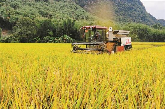 羊城晚报讯 记者欧阳志强,通讯员李胜选、林瑶珠、封俊摄影报道:又到秋收时节,稻谷再飘香。10月18日,记者在韶关市武江区龙归镇续源村看到连片金黄色的稻田里,种植大户林未莲正组织农技人员开镰收割晚稻,现场一片丰收忙碌景象。这也是武江区“第一镰”开镰收割的晚稻。 “今年种的36亩油粘米,每亩产量达到1000斤,我觉得挺满意的!”种植大户林未莲喜笑颜开地说道,“晚稻抢收后,农田计划用来种植蔬菜。” 当前,武江区晚稻长势喜人,沉甸甸的稻穗随着秋风拂过,满眼尽是“喜看稻菽千重浪”的丰收景象。“武江区今年晚稻种植面积3.2万多亩,加上早稻种植面积共6万多亩,全年水稻种植总面积、总产量均有所增长。”武江区农业农村局有关负责人介绍道。 据悉,全年水稻丰收主要得益于持续推进武江区农田水利设施的改造提升,以及病虫害统防统治抓得早、抓得好。预计全区晚稻收割将会持续到11月底。 武江区农业农村局相关负责人表示,当前在指导各镇做好晚稻收割,确保颗粒归仓的同时,正积极推进全区3.46万亩的冬种计划任务。目前,已为全区广大农户免费发放了蔬菜种子7270斤,可种植面积达1.1万亩。此外,武江区农业农村局尝试通过招商引进企业开展“候鸟式”种植基地模式,扩大冬季蔬菜种植面积。
