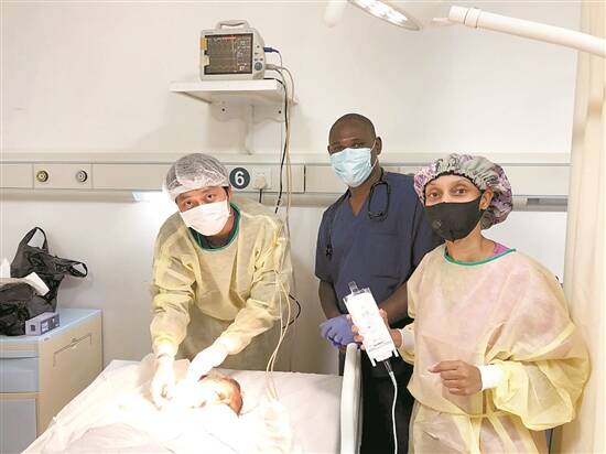 吴德熙(左一)开展多米尼克首例临时起搏器植入术 受访者供图 |