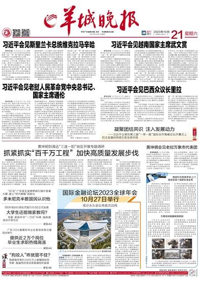 中共广东省委主管、主办 羊城晚报社出版 1957年10月1日创刊 2023年10月21日 癸卯年九月初七 星期六 报料热线:(020)1