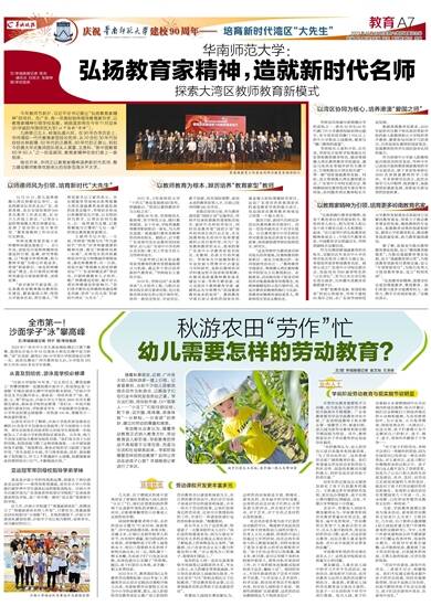 文/图 羊城晚报记者 崔文灿 王沫依 随着秋意渐浓,近期,广州各大幼儿园秋游逐一提上日程。记者留意到,当前不少幼儿园都选择农田作为秋游点,以期孩子们在行走中探究发现劳动之美。学古法打稻、用谷粒作画、DIY稻草人……“小豆丁”们前往稻田地,躬下身、迈开腿、练体魄,亲身体验“一分耕耘,一分收获”的奇妙,建立对劳动的尊重和感恩。 有幼教从业者认为,随着劳动教育正式纳入教育方针,劳动教育进入新阶段,学前教育的劳动不再局限于日常任务,而是与生活和社会联系起来。学前阶段需要怎样的劳动教育?如何让劳动走进孩子心里?羊城晚报记者进行了采访。 体验秋收 劳动课程开发更丰富多元 几天前,位于增城区的倚丰营地迎来了黄埔区育蕾幼儿园大班的“小豆丁”们,他们在爸爸妈妈的带领下认真聆听领队的讲解后,走入农田,近距离接触曾经只在餐桌上见到的农作物。 该园的梅雅敬老师介绍,本次的活动主题为“行走田间,体验秋收”,其中包括收割水稻、参观丰收、采摘玉米、打稻以及制作稻草人的环节,在有枝叶遮蔽、较为阴凉的木瓜地里,老师嘱咐孩子们带上画笔和本子,将自己观察到木瓜的样子和特点画出来;另一边,领队摘下一绺玉米穗,告诉孩子们“白色还未成熟,而深色就可以采摘了”的原理,随后,孩子们前往玉米地,亲手摘一根玉米带回家。 2022年6月,教育部印发《义务教育劳动课程标准(2022年版)》,明确将劳动从综合实践活动课程中独立出来,也意味着劳动课程正式成为中小学的必修课,那么,幼儿阶段的劳动教育该怎么做?“幼儿阶段的劳动教育会以感受和体验为主,在日常的教学活动中,我们会引导孩子谈谈对劳动的感受和体验,分享一些关于劳动的故事,让他们发现身边的劳动者,比如关注爸爸妈妈的工作,并进行一些诸如快递打包的类似职业体验。”梅雅敬说。 家长岑女士为了这次秋游,特意请了一天假来陪伴女儿出行:“我们真的很愿意参加,因为小朋友平时没有太多机会能这么接近农田,了解饭桌上的食物是怎么来的。”她提到,自己在家也会让女儿做力所能及的小事,“会让她洗自己的袜子,即使我们要返工。” 身旁的女儿则一直在认真地观察并用画笔记录眼前的木瓜,岑女士表示,女儿的确非常喜爱画画,平日里在家和幼儿园画得比较多,今天在室外“写生”的机会相比之下比较难得,“劳动教育很有必要,以后希望能多有机会带孩子出来感受劳动”。 育蕾幼儿园园长谭加颖认为,这样的活动体验是丰富、情境化、游戏化的,而非扁平的学科说教,这样的活动会对孩子们的心灵带来莫大的冲击,冲击他们对于劳动、对于艺术、对于生活之美好的认知和体验。 社会也在更多地为孩子打造劳动实践的平台。唯度研学是此次活动中倚丰营地和幼儿园的对接方,负责人王壮元提到,营地的开设已有超过七年的时间,而在近两年来参与的人数越来越多,同样也促成了更加丰富多元的劳动课程的开发,“孩子们在这里可以挖莲藕、摘玉米、砍甘蔗,还可以用割下来的水稻制作稻草人,看吹谷机究竟如何工作,打下来的稻米还能做成饭团给孩子品尝,趣味十足”。他同时表示,不同年龄段的孩子会有不同的环节设置,“小学会加入艺术创作、科学实验、稻谷培育等动手性强的内容,但对幼儿园的孩子来说,‘看到吃到摸到’比较重要,这次的活动也都围绕这几个特质来设计”。 业内人士 学前阶段劳动教育与现实脱节较明显 尽管劳动教育重要性不言而喻,但当前幼儿园中劳动教育开展得并不算理想。广东省教育督导学会学前教育评估专家、广东省特级教师王秋长期从事一线教学工作,她意识到,幼儿园当前劳动教育和现实脱节情况较为明显。其中,教师和家长对于劳动教育的认知还存在偏差。 “有的教师认为,幼儿的劳动只是自我服务和技能训练,‘为了劳动而劳动’,没有看到劳动更广阔的教育价值。我们希望通过劳动活动来培养幼儿的社会性、创造性和解决问题的能力,同时也是在培养孩子的责任感。” 而家长的过度包办无疑更加弱化了孩子自我服务的能力。王秋通过多年观察研究发现,家长包办得越多,孩子出现心理问题的比例越高,自私、不愿分享等情况十分普遍。 采访中,育蕾幼儿园园长谭加颖则认为:学前教育阶段劳动教育普遍存在形式化、虚假化、扁平化的现状,“劳动教育应贯穿于儿童真实的生活中,应从儿童开始培养,形成良好的劳动习惯;此外,切忌讲授式教育,而应注重儿童亲身的体验、在行动中体验劳动带来的乐趣”。 学前教育阶段的劳动课应该怎么上?这些是学校和家长普遍关心的问题。 谭加颖说,儿童在幼儿园中的学习不外乎生活活动、体育活动、游戏和学习活动,而劳动教育与这四大类的活动都可相结合。她谈到,育蕾幼儿园的劳动教育是立体而丰富的,在孩子一日生活的各个环节中进行渗透。每天入园,孩子们会拿起小水壶喷洒园中公共区域内的绿色植物;每天早餐后,他们会去照顾自己班级养殖区的小动物和植物,为花草修剪枯叶,为小金鱼、小乌龟等喂食;班级每周会有一天清洁日,在这天里,孩子们拿着小毛巾去擦拭自己的柜子、盒子、椅子、桌子,里里外外擦得干干净净…… “对于孩子们的劳动,老师不会进行一些额外的奖励,因为在园里早已经形成一种生活的常态,对儿童而言,这是习惯正在慢慢形成的过