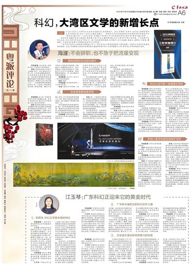 文/羊城晚报记者 孙磊 10月18日至22日,世界科幻大会首次走进中国,在成都举行。本次“雨果奖”名单中,由中国人获得的奖项之多为历届之最,其中广东科幻力量备受瞩目——深圳9