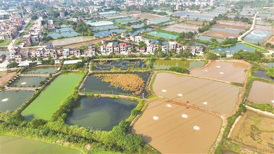 均安镇1.5万亩连片养殖鱼塘 羊城晚报记者 王泽宝 摄 |