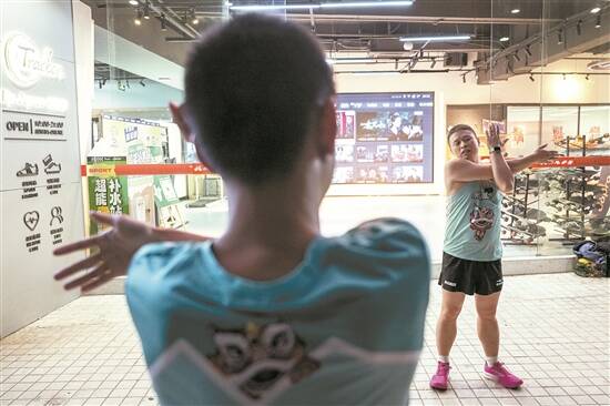 聪聪是跑团中的一员,在领跑员王琦的带领下做训练前的热身 |