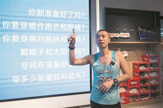 跑团总教头叶梓豪正在给跑者们讲解比赛的注意事项 |