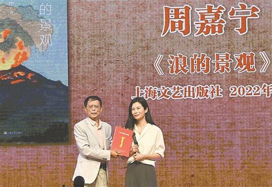 深圳大学教授南翔为周嘉宁(右)颁奖 |