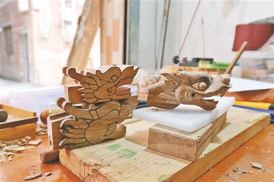 纯手工雕刻的小龙头模型 石梦卓 摄 |