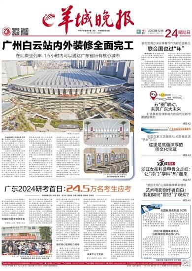 中共广东省委主管、主办 羊城晚报社出版 1957年10月1日创刊 2023年12月24日 癸卯年十一月十二 星期日 责编/孙焰 美编/郭子君
