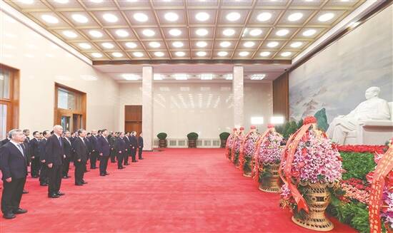 12月26日,中共中央在北京人民大会堂举行纪念毛泽东同志诞辰130周年座谈会。座谈会前,习近平、李强、赵乐际、王沪宁、蔡奇、丁薛祥、李希、韩正等领导同志来到毛主席纪念堂瞻仰毛泽东同志遗容 新华社发 |