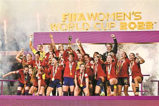 西班牙队庆祝夺得女足世界杯冠军 新华社发 |