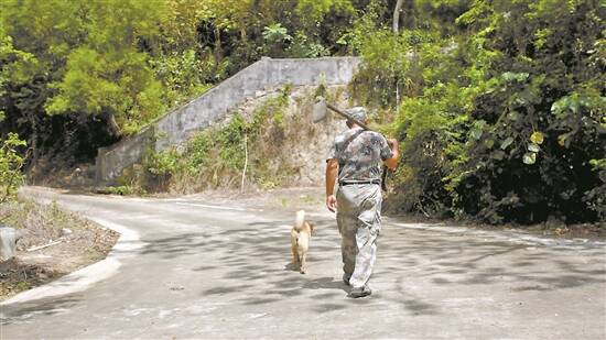 偏僻的小岛上,刘清伟常常是一人一狗进行巡山 |