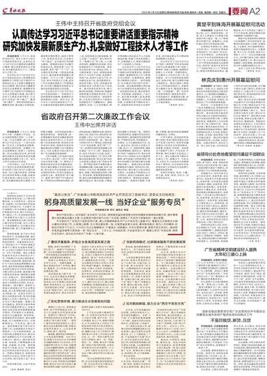 羊城晚报讯 2月8日,省政府召开第二次廉政工作会议。会议全面贯彻落实党的二十大和二十届二中全会精神,深入学习贯彻习近平总书记在二十届中央纪委三次全会上的重要讲话精神,认真落实国务院第二次廉政工作会